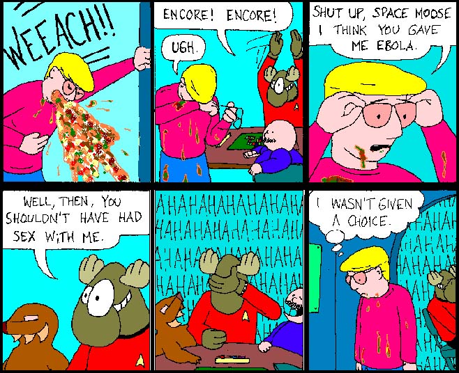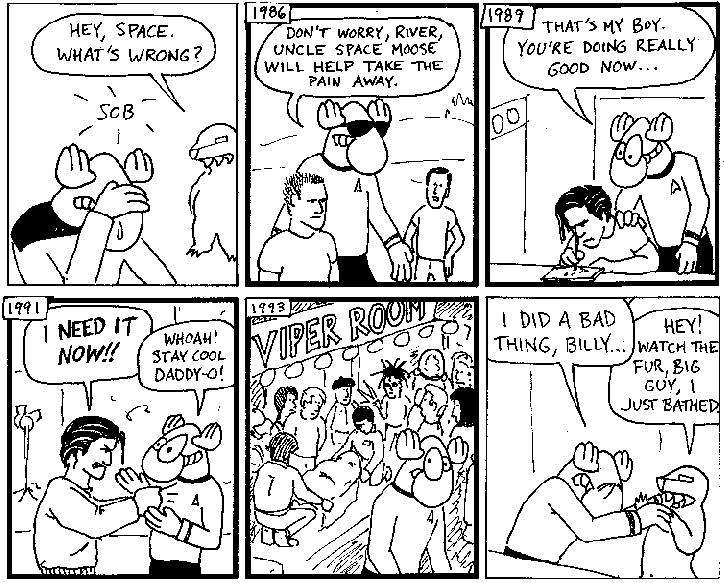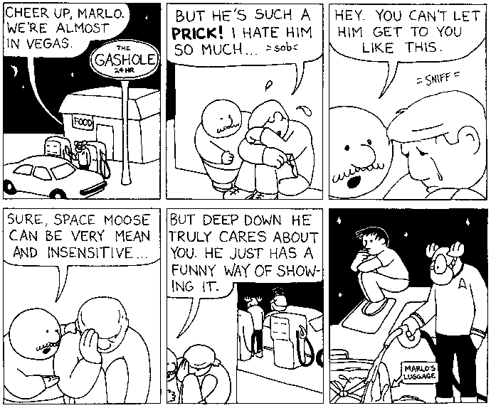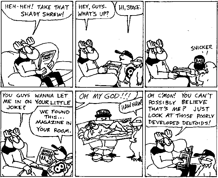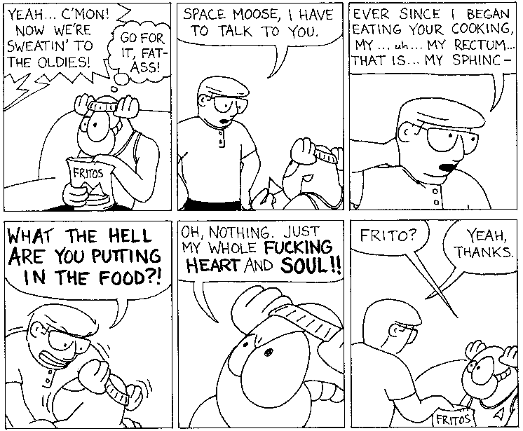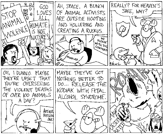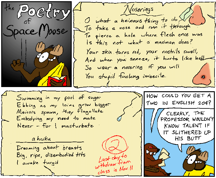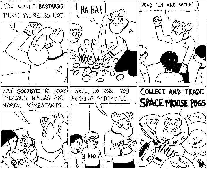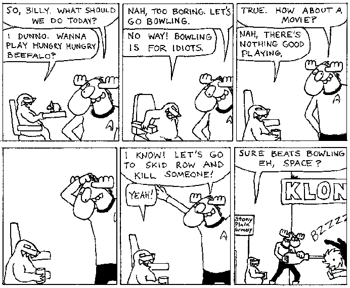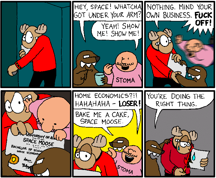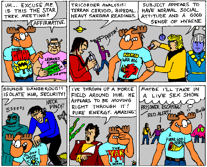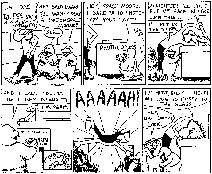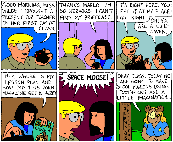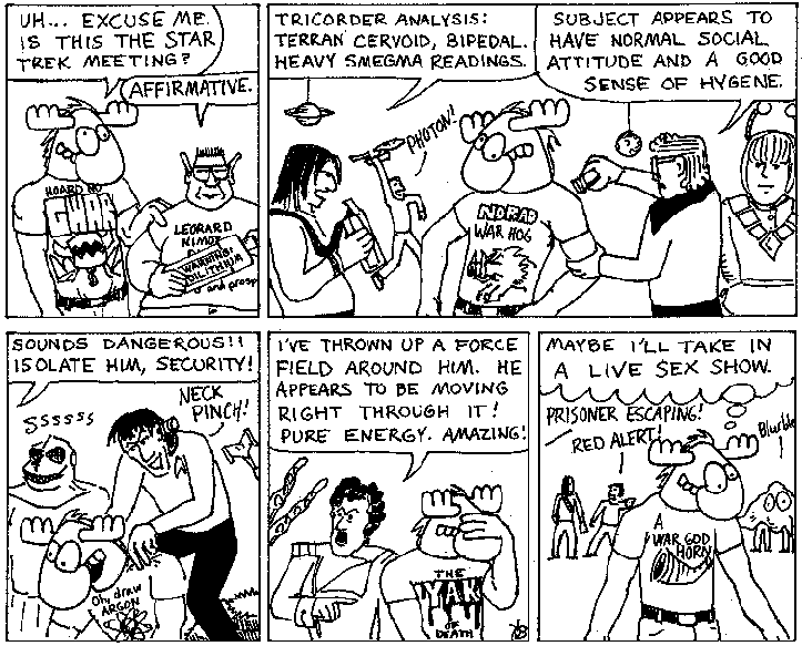 Space Moose appeared in the University of Alberta's student newspaper "The Gateway" from 1989 to 1999. Space Moose is owned by Adam Thrasher, and he will not deny it despite legal counsel.
