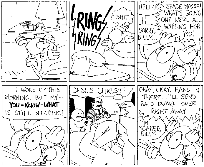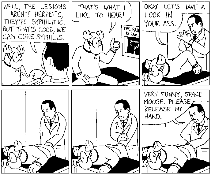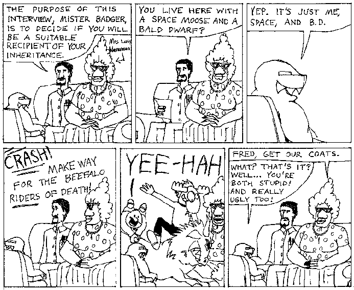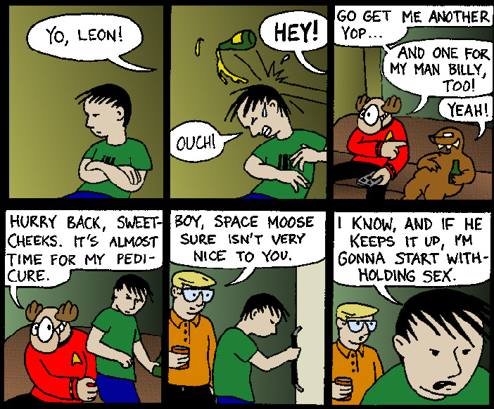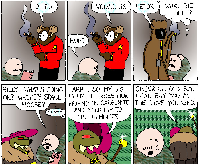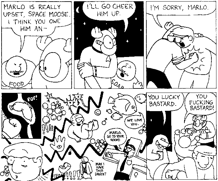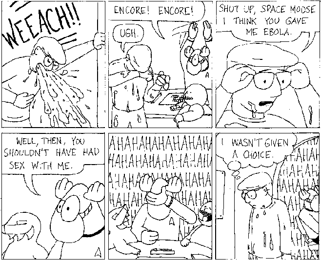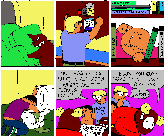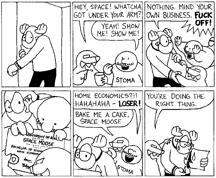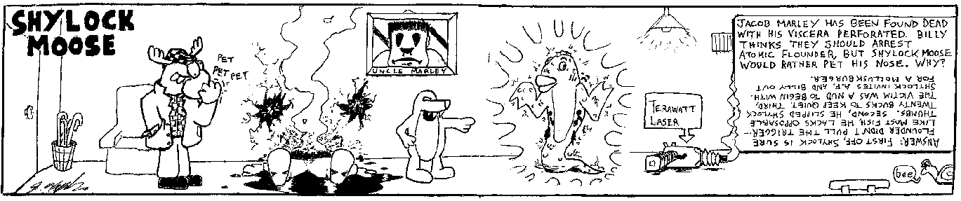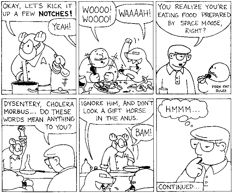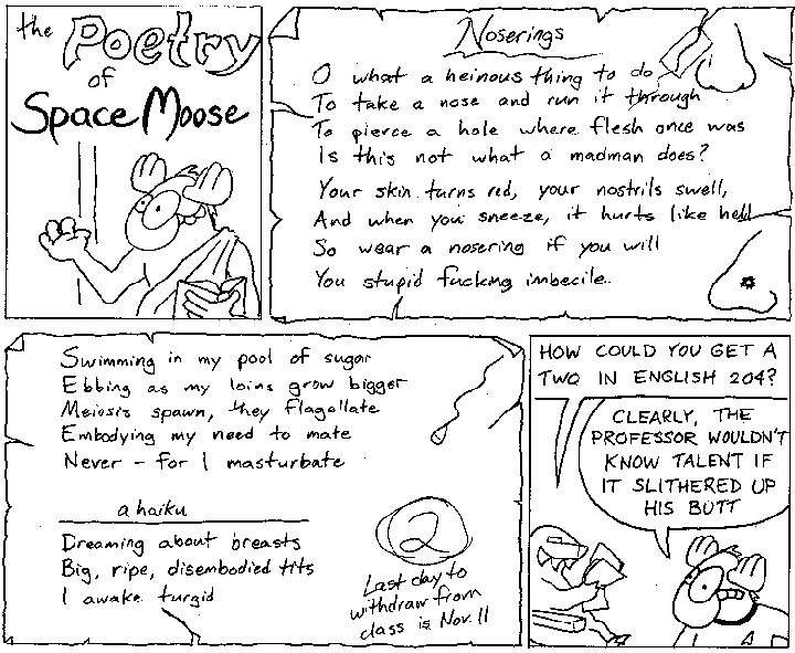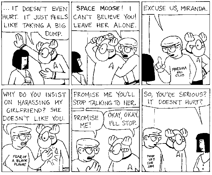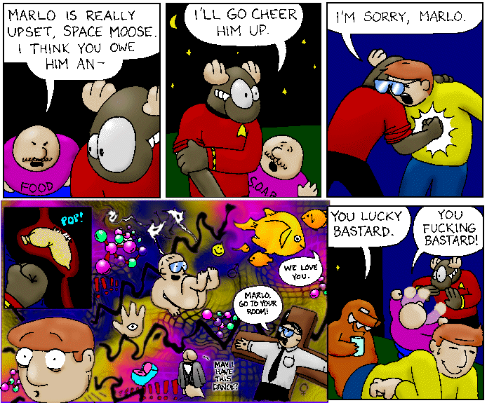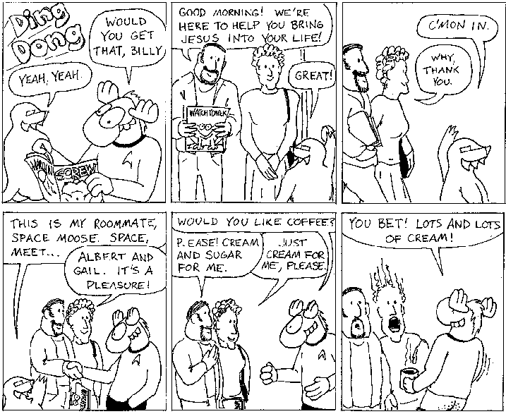 Space Moose appeared in the University of Alberta's student newspaper "The Gateway" from 1989 to 1999. Space Moose is owned by Adam Thrasher, and he will not deny it despite legal counsel.