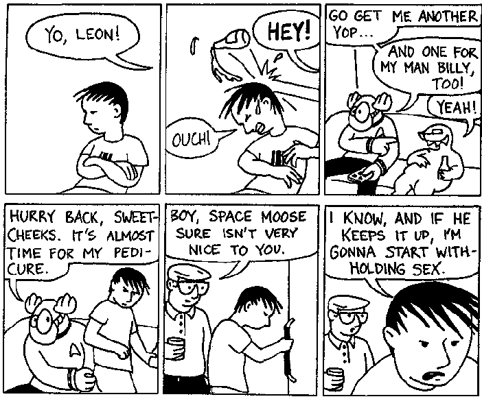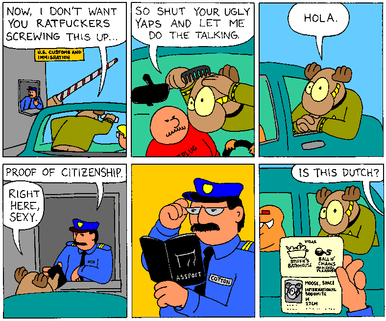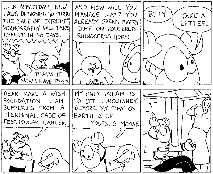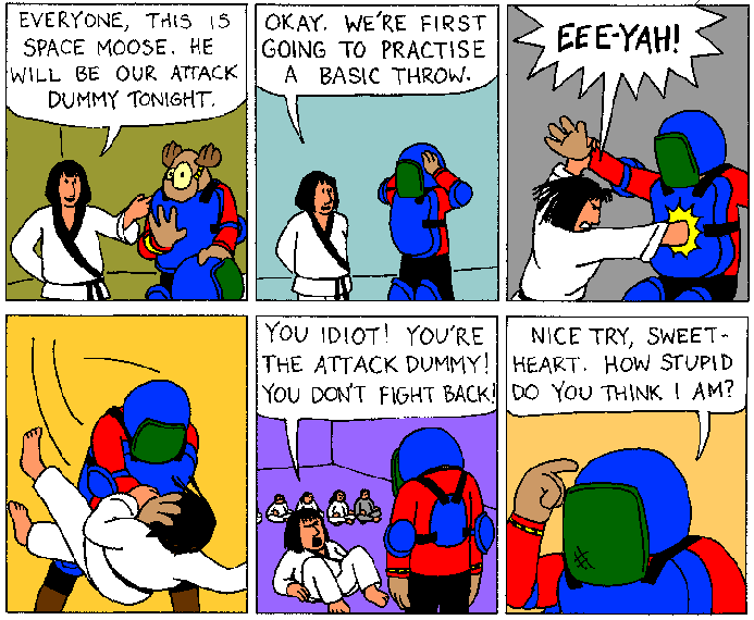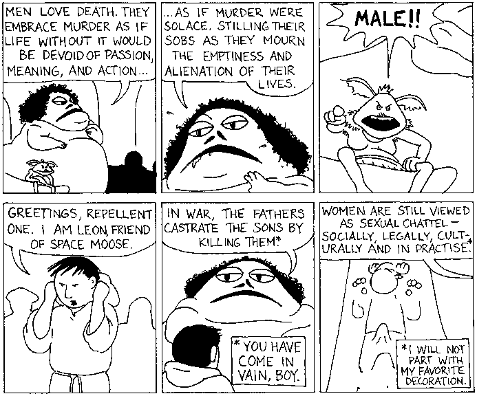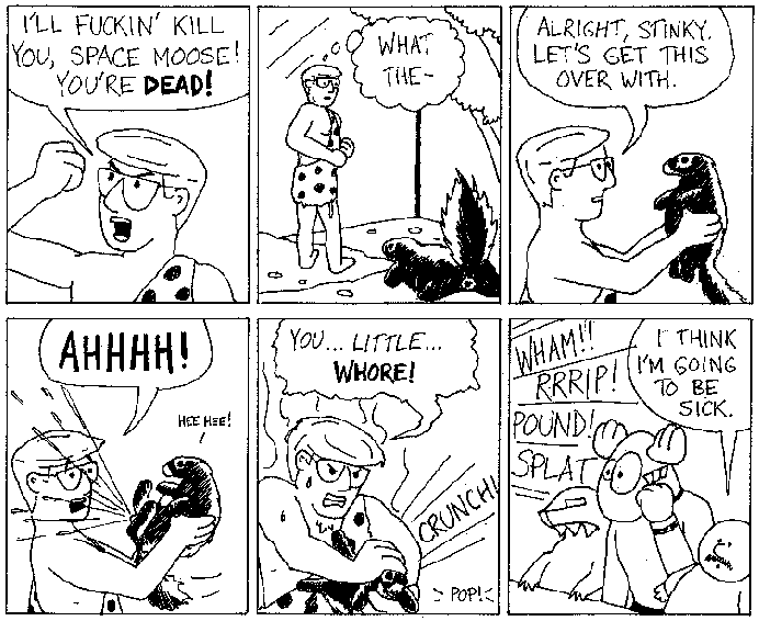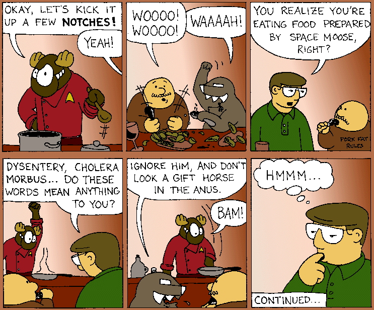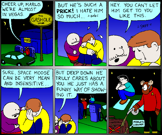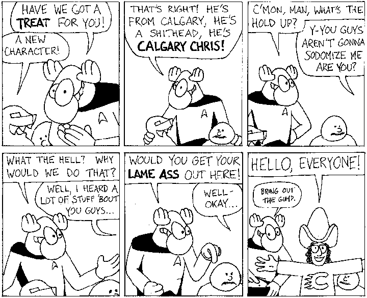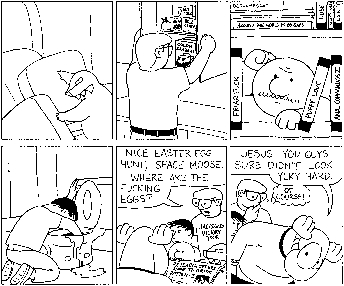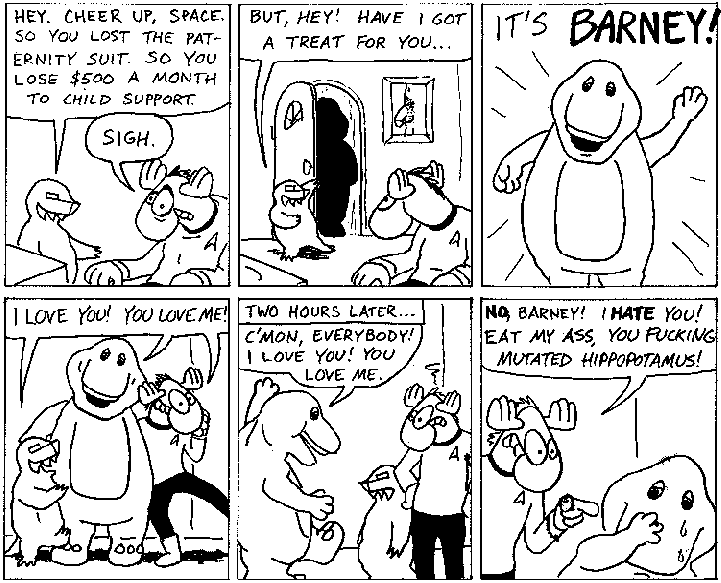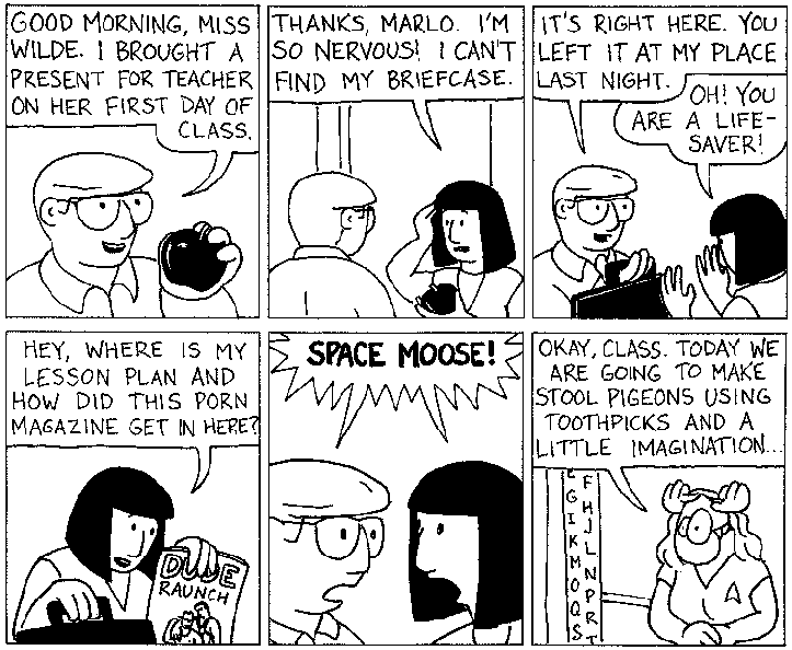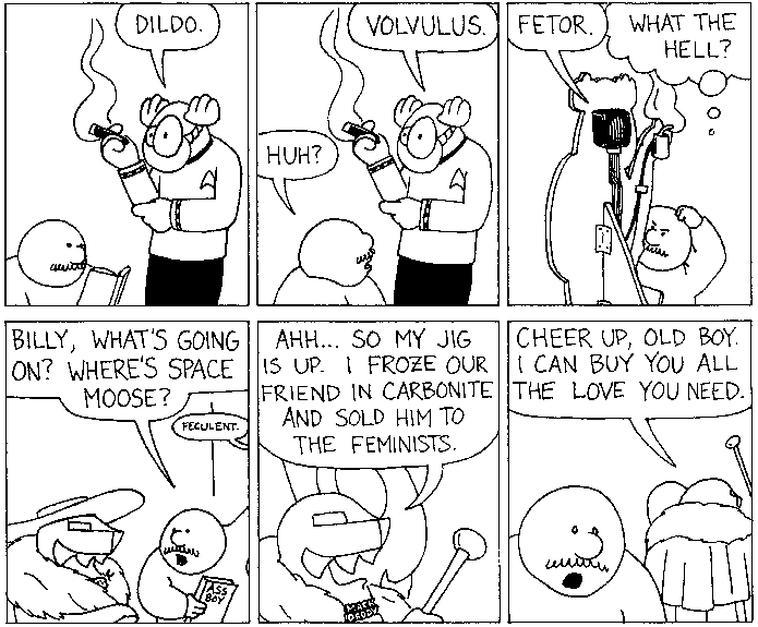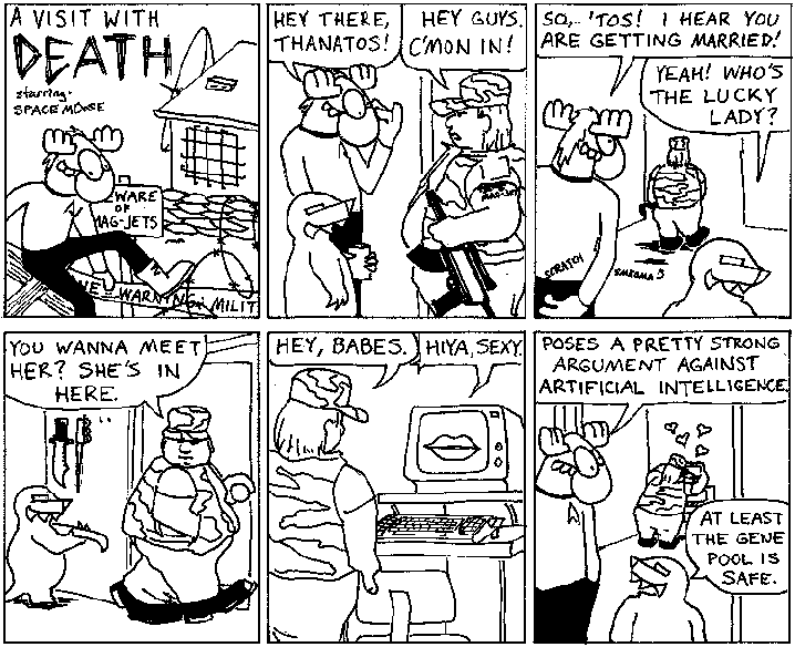 Space Moose appeared in the University of Alberta's student newspaper "The Gateway" from 1989 to 1999. Space Moose is owned by Adam Thrasher, and he will not deny it despite legal counsel.