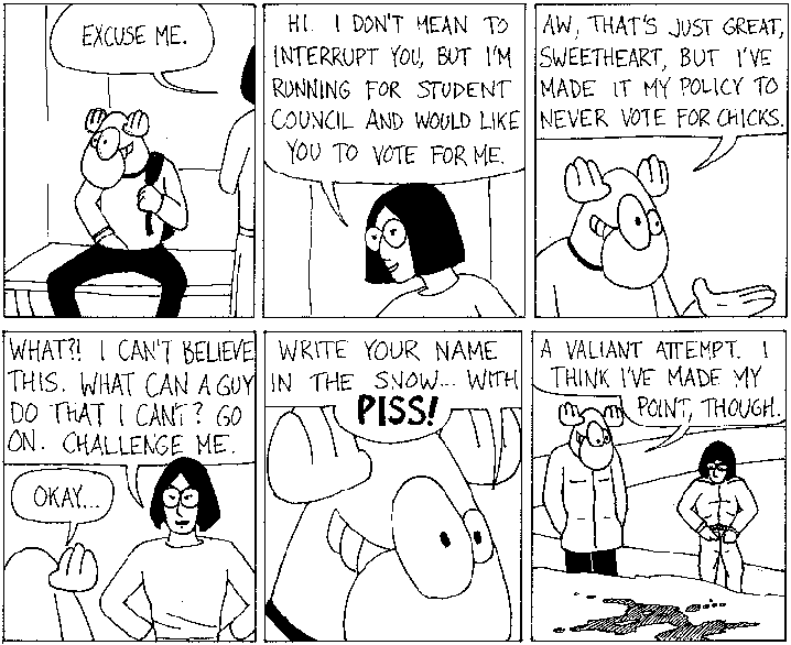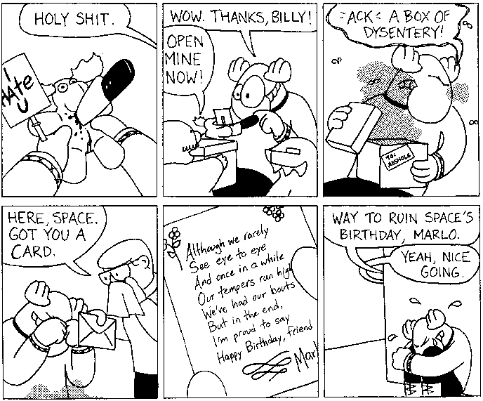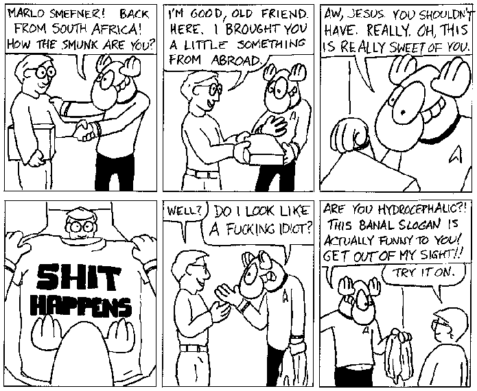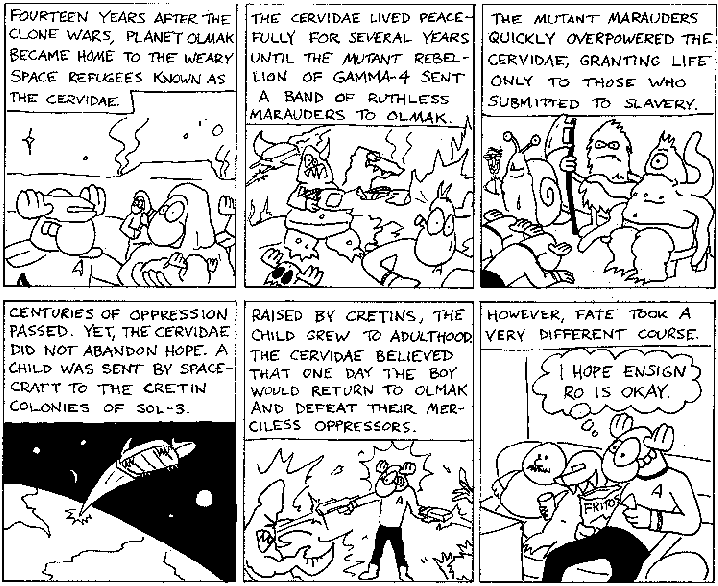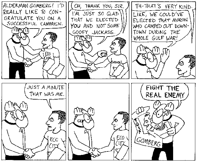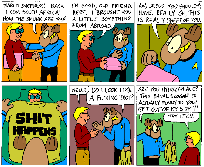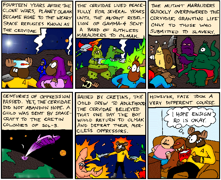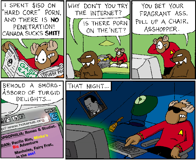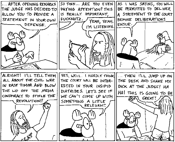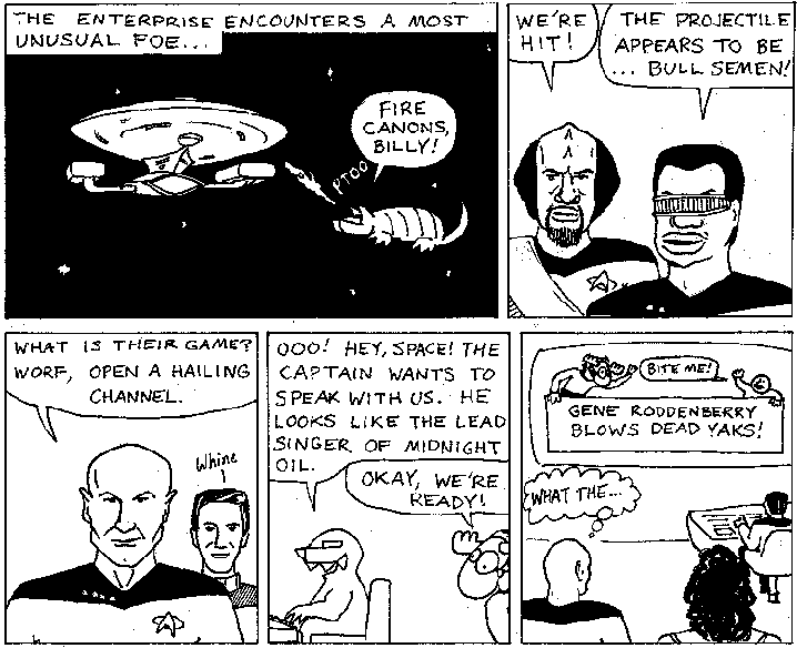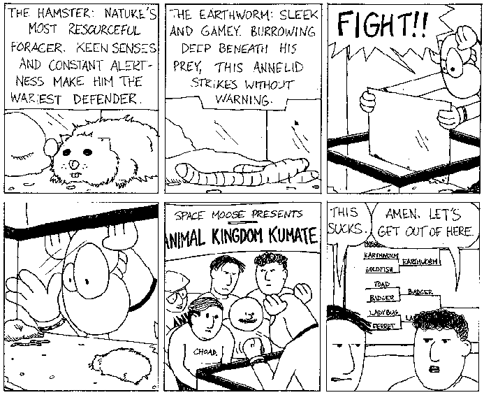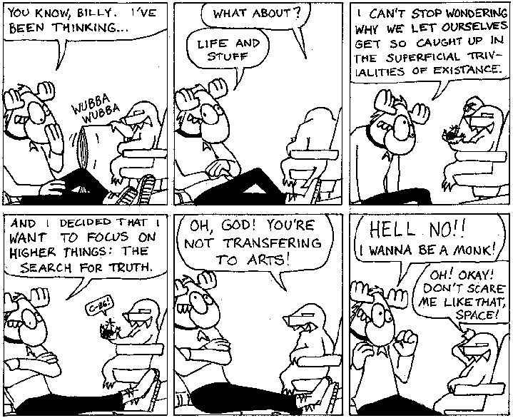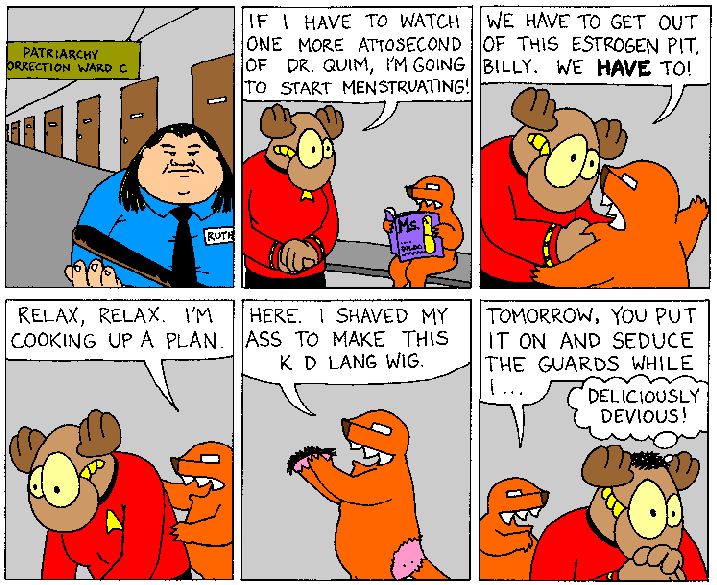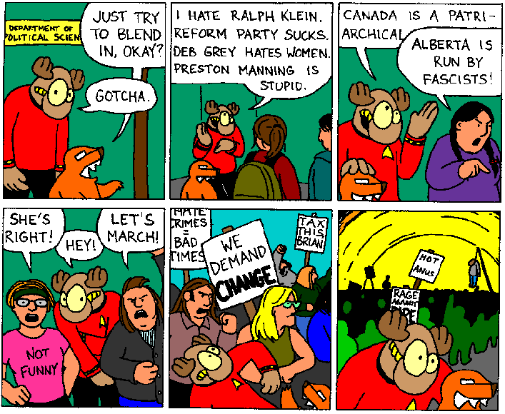 Space Moose appeared in the University of Alberta's student newspaper "The Gateway" from 1989 to 1999. Space Moose is owned by Adam Thrasher, and he will not deny it despite legal counsel.