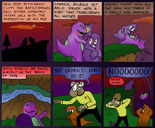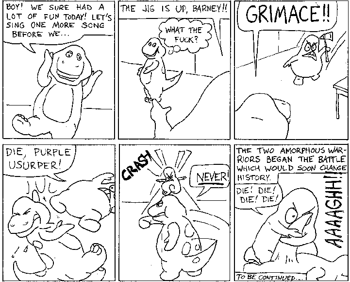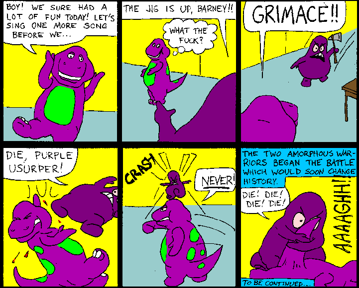 Barney meets Grimace